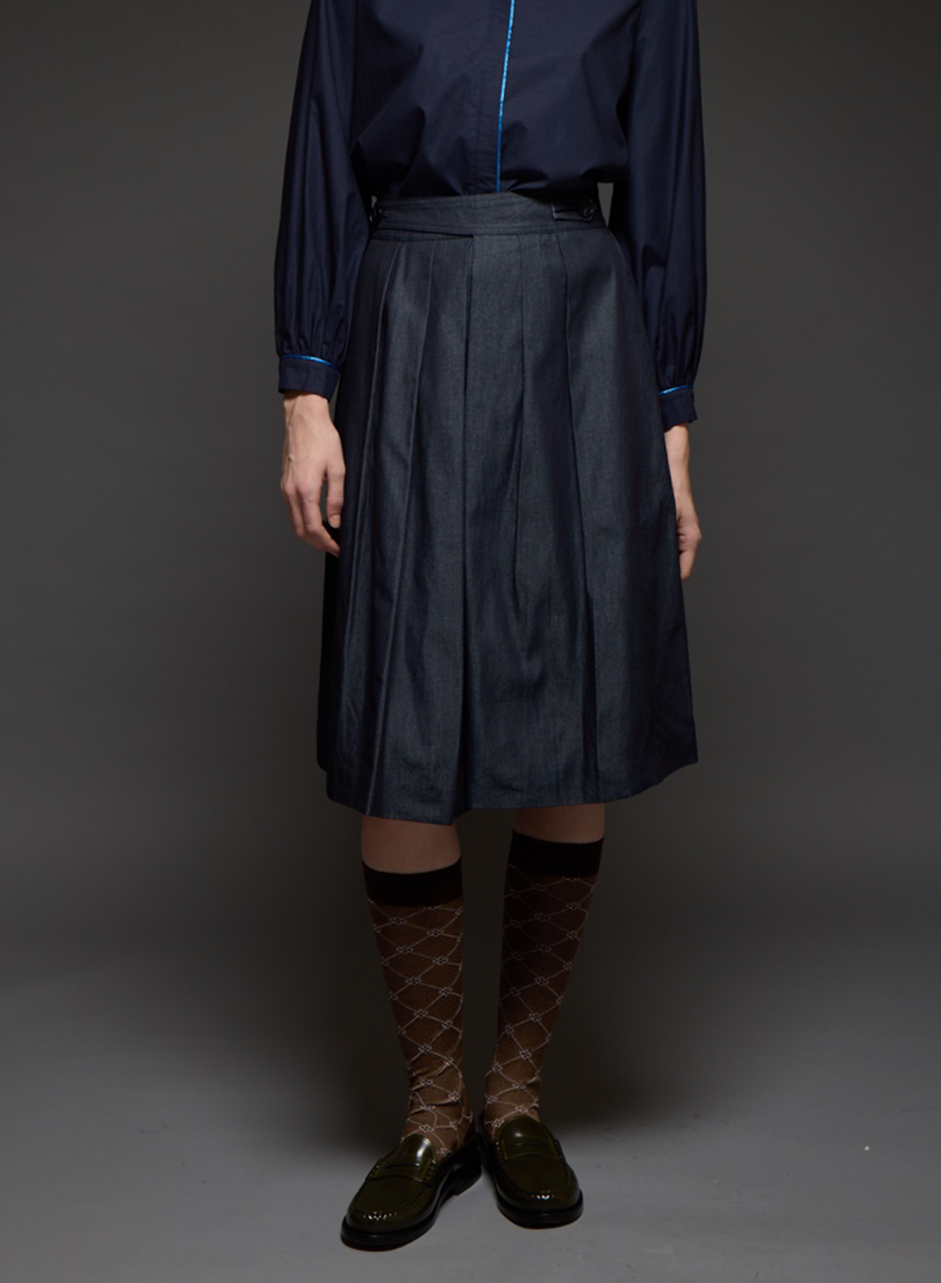 Wrap pleated skirt with lining.