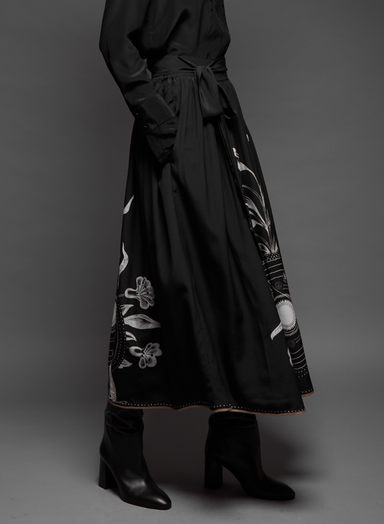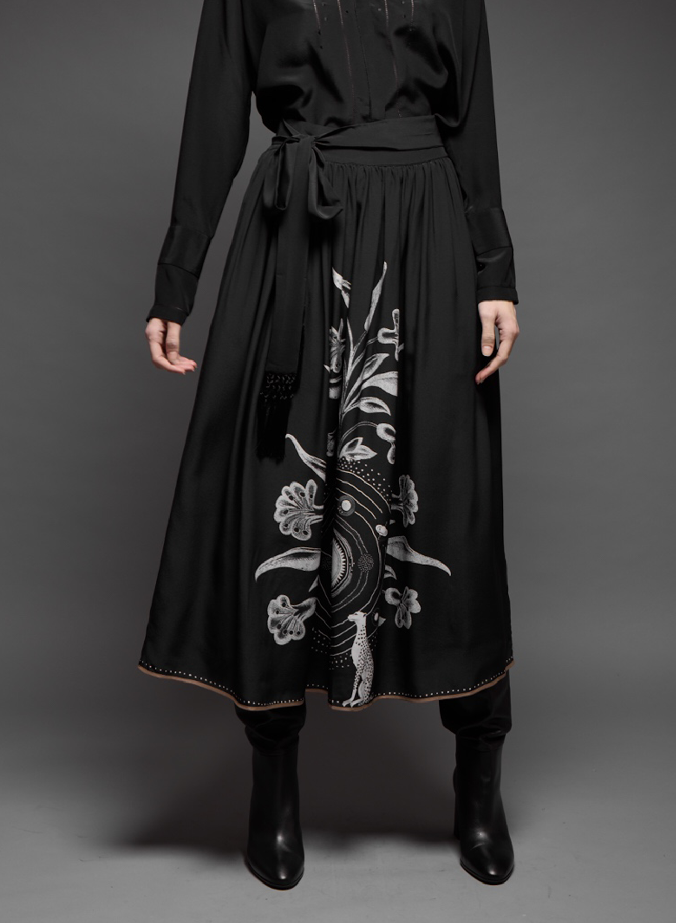 Gathered midi skirt with detachable belt