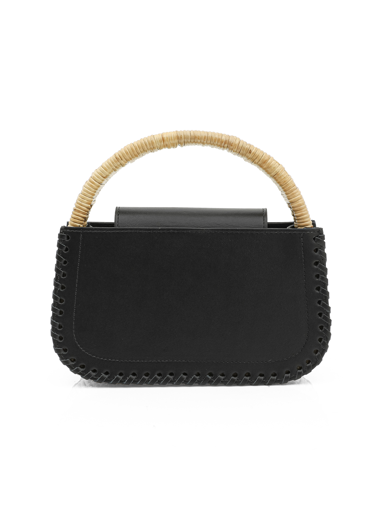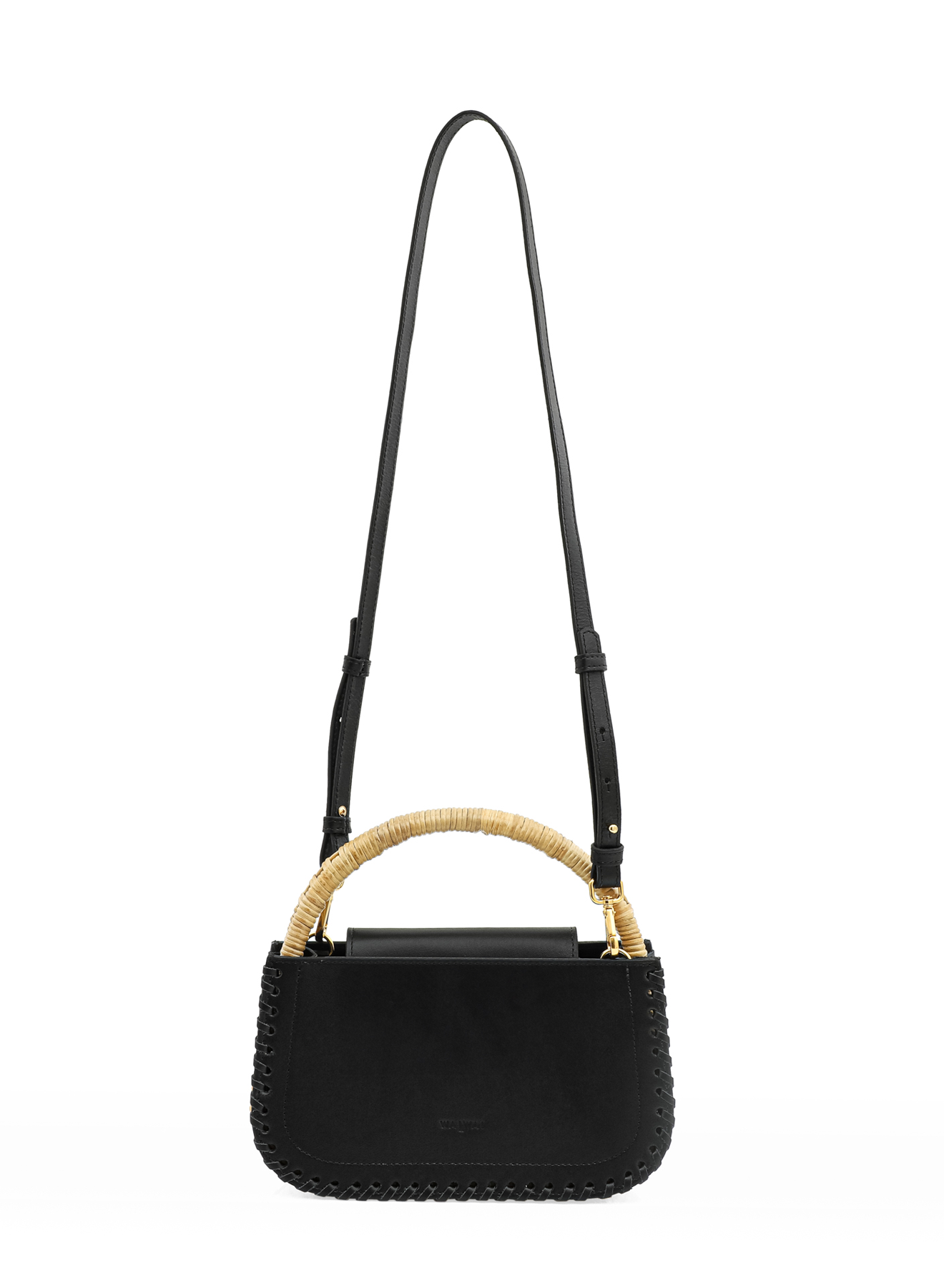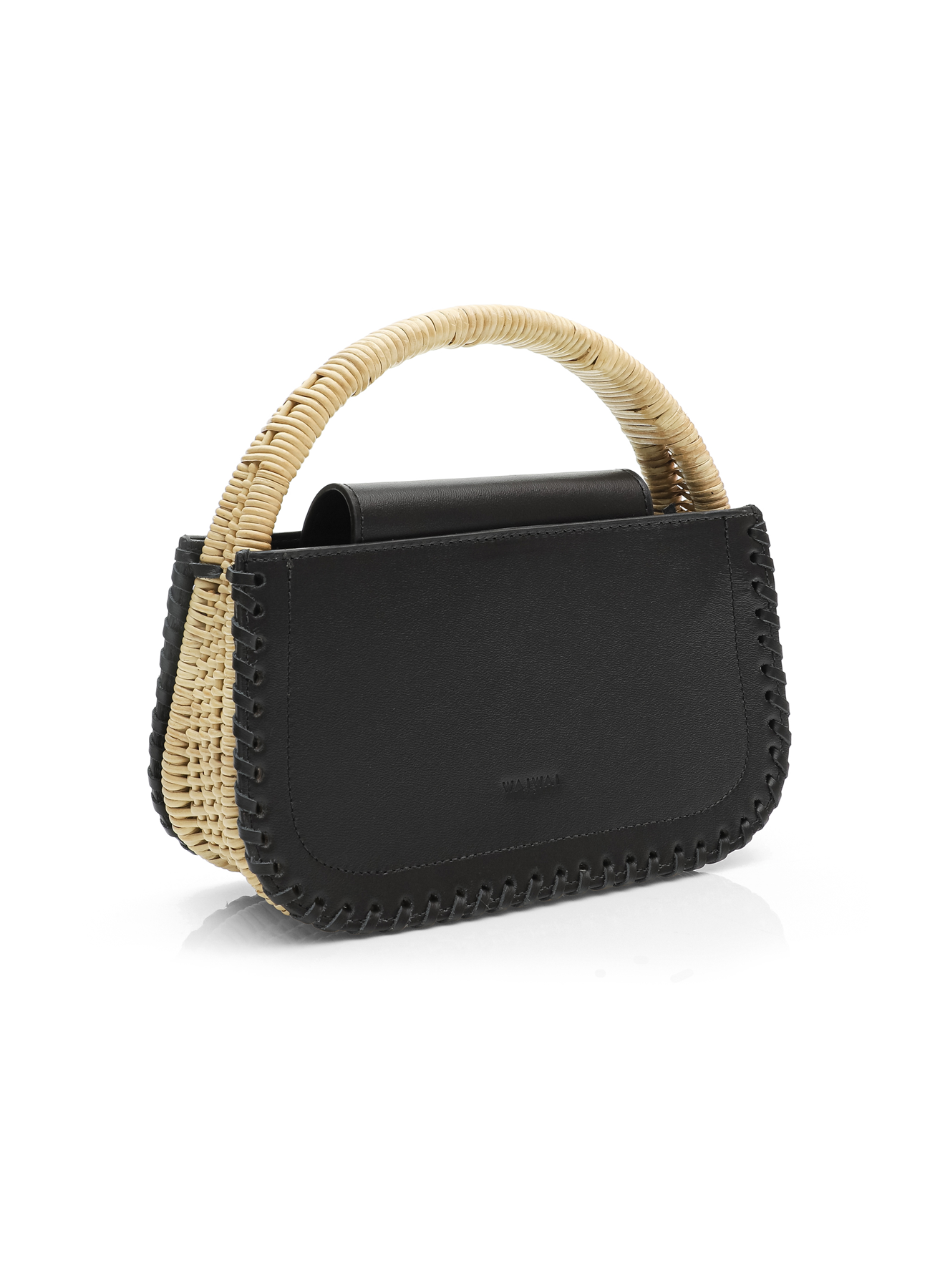 Handwoven wicker bag with leather panels. Detachable leather shoulder strap with linen lining. Can be used as a shoulder bag, crossbody or handbag.