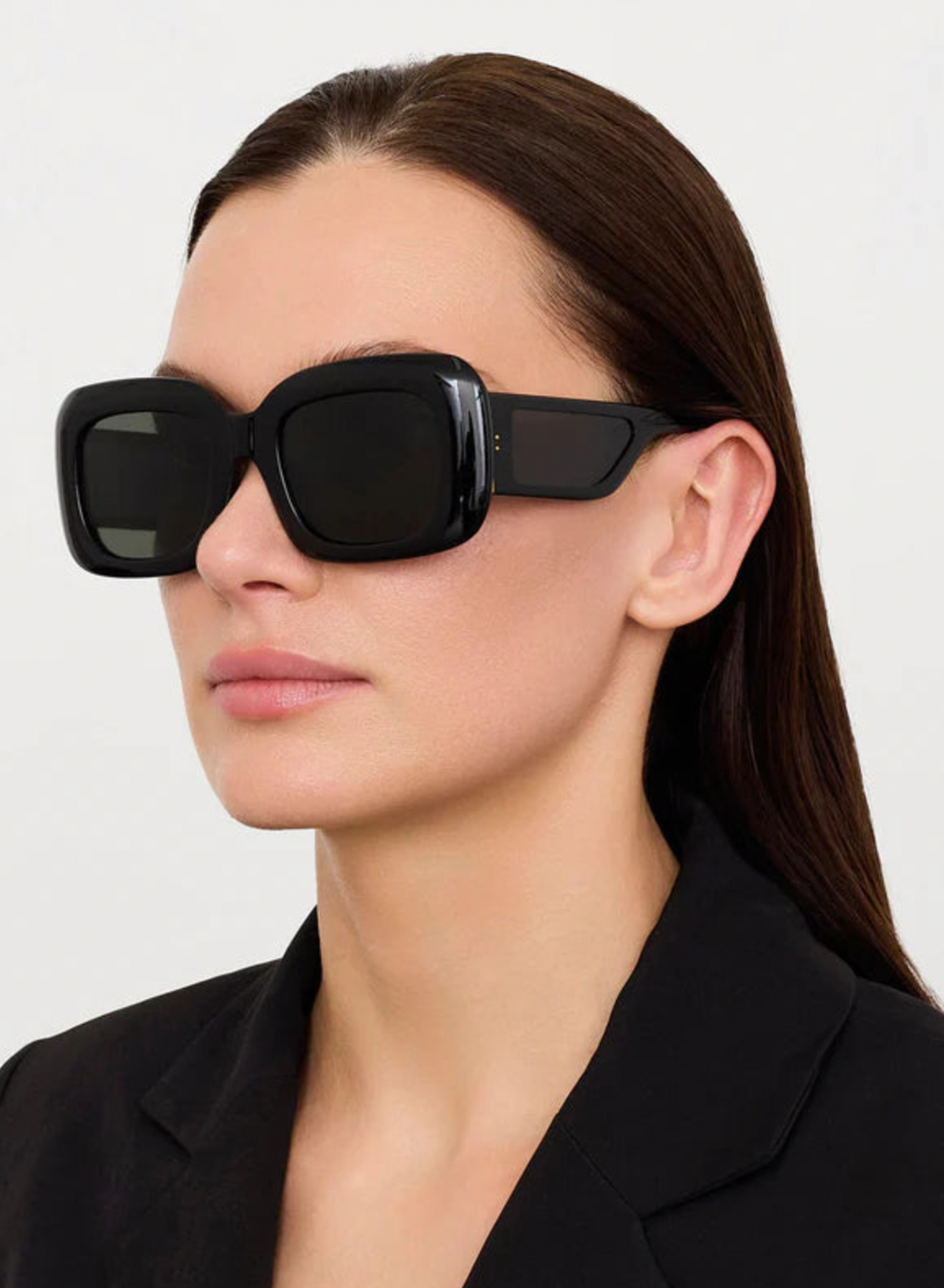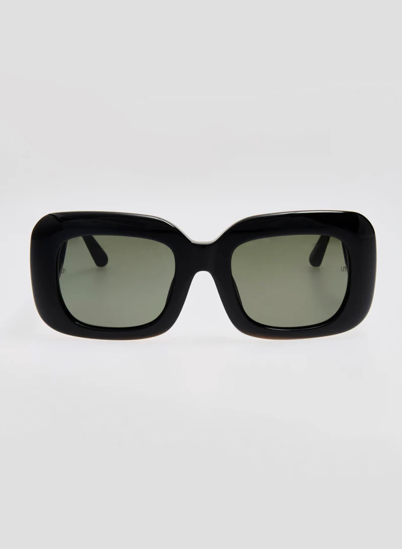 The Emmy sunglasses feature a bold rectangular frame crafted from premium Italian acetate in black. Designed for sun protection, the grey lenses provide full UV defense. This stylish model includes sculpted nose pads for enhanced comfort and a secure fit.