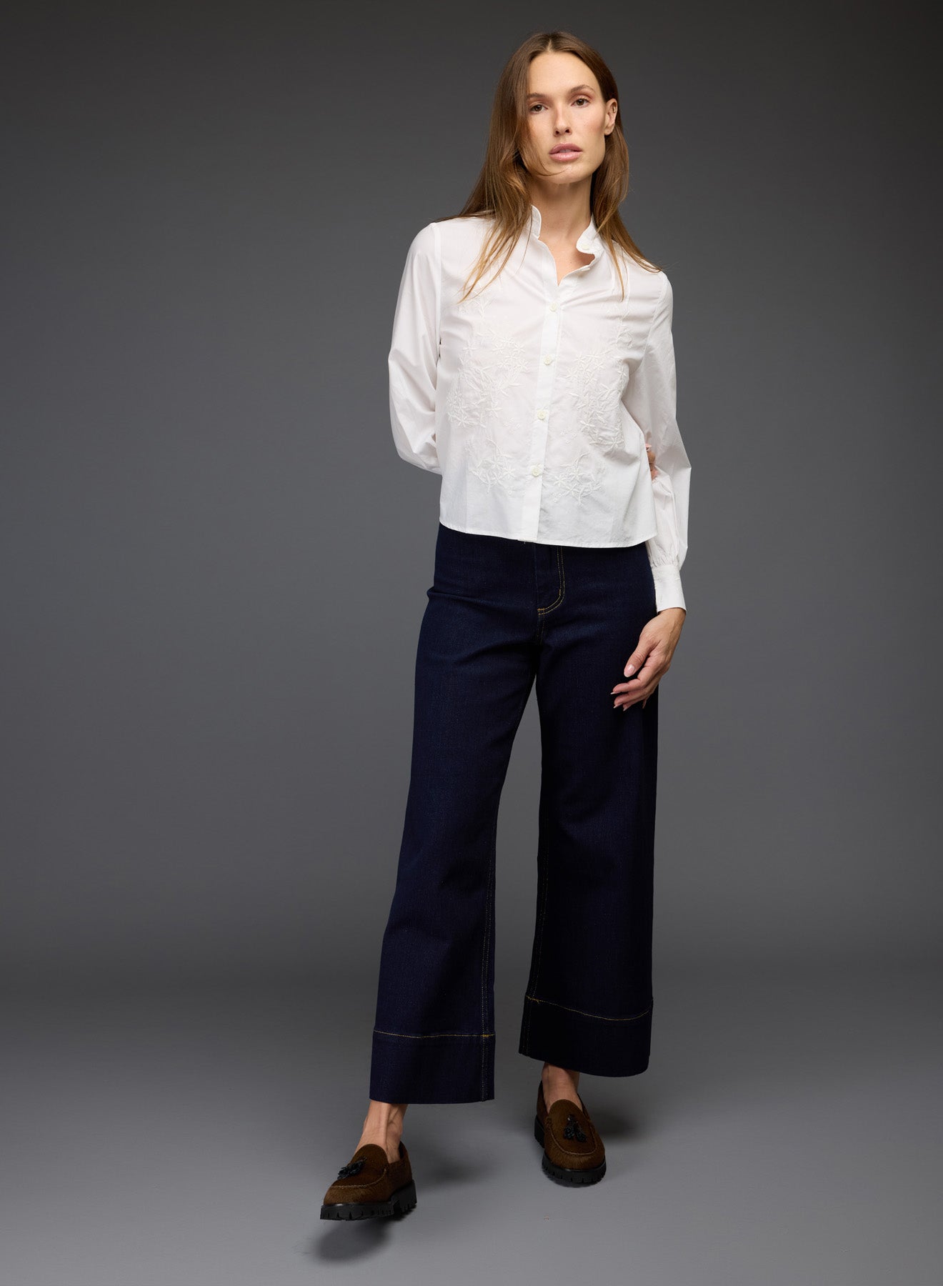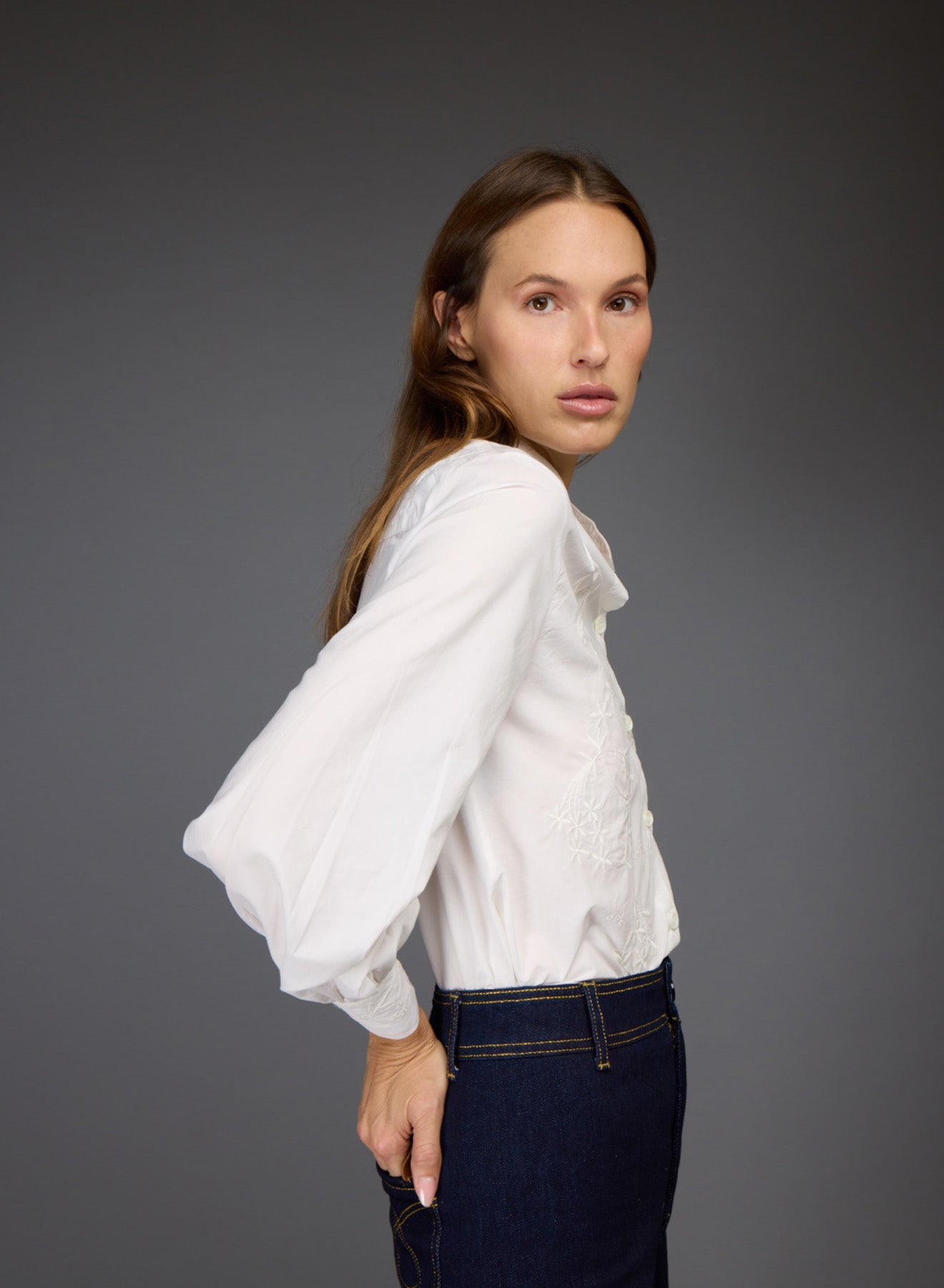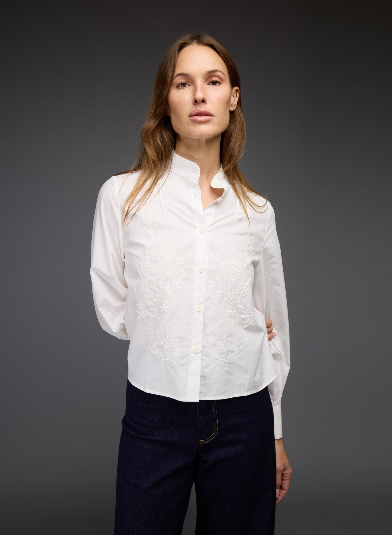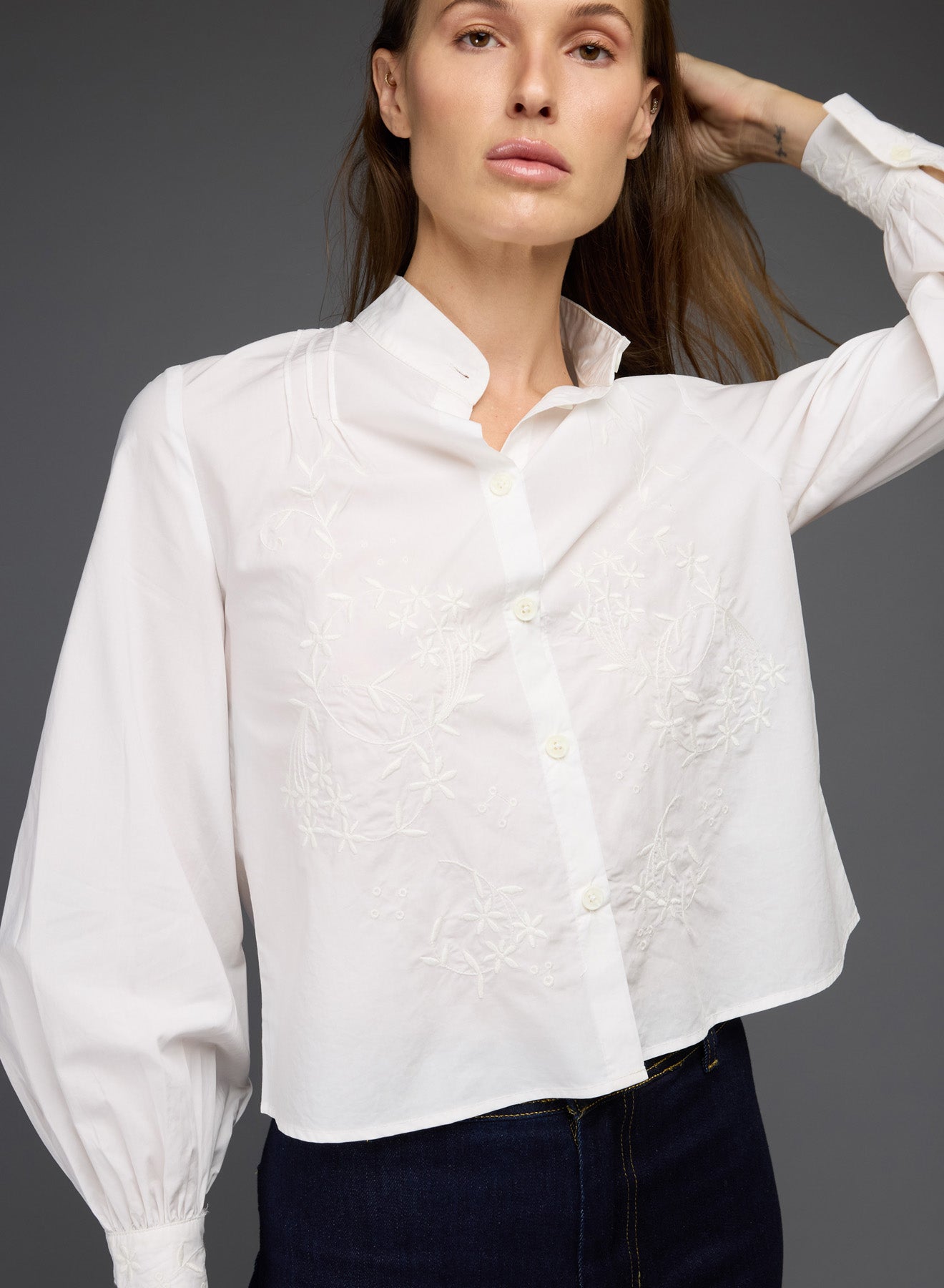 Button up blouse with embroidery details
